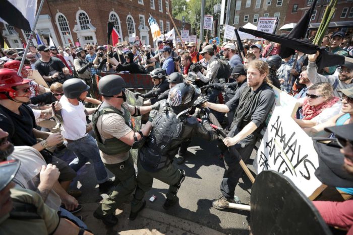 En este caldo de cultivo, la discusión sobre los monumentos a los generales confederados actuó como catalizador de una enorme polarización político-social. Los grupos fascistas que defienden a Trump tomaron como una cuestión de principios la defensa de sus símbolos, pero más aún, lo consideraron la ocasión ideal para lanzar una contraofensiva, mostrándose públicamente de manera provocadora y buscando generar un “shock” mediático.
