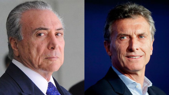 Las crisis políticas de ambos gobiernos vienen de lo siguiente. Temer jamás tuvo una gran popularidad; pero ahora sus índices están por el piso. Macri gozó durante dos años de un “blindaje” que lo mantenía en torno al 50%, pero en los últimos meses su popularidad se ha derrumbado.