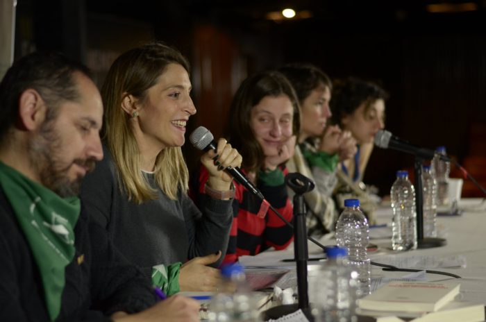Una cuestión muy novedosa de este año, ya para entrar a nuestro país, es que conquistamos un movimiento de masas por la legalización del aborto. Eso es una novedad novedosísima. Que la pelea por el aborto es correcta ya lo desarrollaron mucho mejor que yo acá mis compañeras y compañeros en el panel y seguro ustedes tienen un montón de argumentos. Era correcta, pero les juro que no por eso era mayoritaria. Lo habremos planteado bajo cuestionamientos, un poquito en soledad y en minoría, pero este año logramos la novedad de la mayoría. Hay una mayoría social en favor del aborto y hay además un movimiento de masas por este derecho. Es una conquista histórica. Esto es histórico, lo que pasa en el mundo y lo que pasa en Argentina. Eso creo que son importantes puntos de apoyo y hacen a esta cuestión que es coyuntural y momentánea, que es que no haya salido en el Senado. Esto recién empieza. Vamos a usar la palabra derrota porque efectivamente la ley no terminó saliendo. Pero esta pelea tiene para rato, porque tiene fuerza. Tiene bastante de guerra, porque si del otro lado está la Iglesia, hay muy poco de pacífico en esta discusión. Nosotros atravesamos el primer round. Acá lo importante es reconocer, creo yo, que es parte de esta identidad, de este movimiento y de toda esta alegría. Porque no salió la ley en el Senado, pero la sonrisa y el glitter y el brillo y las ganas y la música y la batucada no te lo roba nadie. Generó una contradicción porque muchos dijeron «no salió la ley, pero las sonrisas eran enormes». Y sí, porque esas sonrisas reflejan y conectan con lo importante, que es todo el terreno que se avanzó. Y es ser consciente de que vos partías, si bien tenías toda una acumulación y venía todo un desarrollo, de todas esas trabajadoras desocupadas que coparon los Encuentros de mujeres para mostrar el problema social de la ilegalidad del aborto, lo que significa morir por la clandestinidad, además del problema de la decisión del cuerpo, de la libertad, de no ser esclavas.