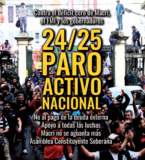 Una catástrofe amenaza a los trabajadores. La catástrofe de un capitalismo en crisis gestionado por un gobierno cuyo único objetivo ha sido beneficiar a los ricos. Hay que derrotar el déficit cero de Macri. Repudiar el acuerdo con los gobernadores. Imponer la ruptura con el FMI y el no pago de la deuda externa. Apoyar a los que salen a luchar y defender que sea el pueblo el que decida. Macri no se aguanta más. Hace falta una Asamblea Constituyente Soberana para refundar el país desde los intereses de los trabajadores y el pueblo.