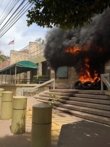 Contrastando con el enriquecimiento de un pequeño grupo de delincuentes encumbrado en el poder del estado, que han hecho de la corrupción y la impunidad una forma de vida, apoyada en la militarización y criminalización social como forma de control de la sociedad. Diez años de gobiernos embarrados en el narcotráfico y el crimen organizado, han llevado a la población a decir basta y estar dispuesta a todo para echar al dictador y su pandilla.