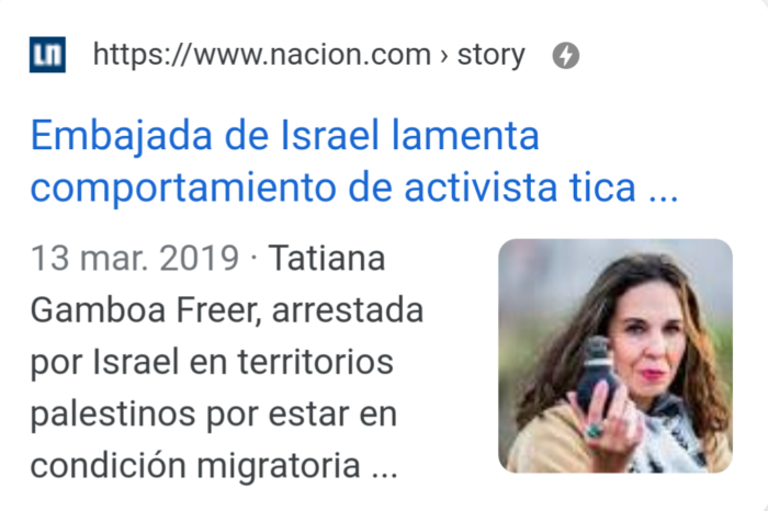 El gobierno de Costa Rica prácticamente me deja sola. Puedo decir que si yo hubiera estada arrestada en otro país, llámese Cuba, Venezuela o Nicaragua, la historia habría sido otra. Pero como soy activista pro Palestina, como fui arrestada ilegalmente en Palestina ocupada, llevada en contra a mi voluntad a Israel, no había que decir nada. Esa fue la posición del gobierno de Costa Rica, no apoyaron a una ciudadana costarricense arrestada en otro lugar. No lo hicieron.