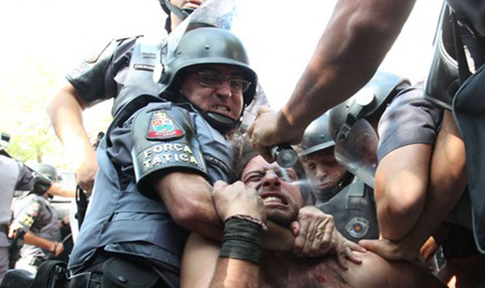 El 23 de junio pasado, se realizó en la Praça do Ciclista (Avenida Paulista) un acto con la consigna “Si no tenemos derechos, no habrá Copa”. Después de reprimir, una vez más, esa manifestación contra los gastos del Mundial de Fútbol, detuvieron de manera totalmente arbitraria a dos manifestantes: Fábio Hideki Harano,empleado y estudiante de la Universidad de São Paulo (USP) y Rafael Marques Lusvarghi, profesor de inglés.