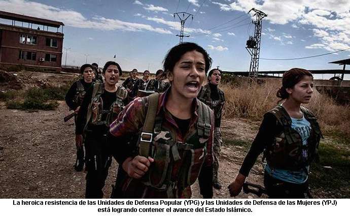 La heroica resistencia del YPG-YPJ está logrando en estos días mantener a raya la invasión del E.I., y más aún, comenzando lentamente a recuperar el territorio perdido. Esto pese a la enorme superioridad numérica y técnica por parte del Estado Islámico (que cuenta con material bélico de primera categoría, saqueado de los arsenales yankis en Irak) y de la ayuda indirecta que le presta Turquía (impidiéndole a los defensores abastecerse y reforzarse a través de la frontera). Para entender la importancia y la dinámica de este combate, es importante detenerse en la caracterización política y social de los bandos enfrentados.