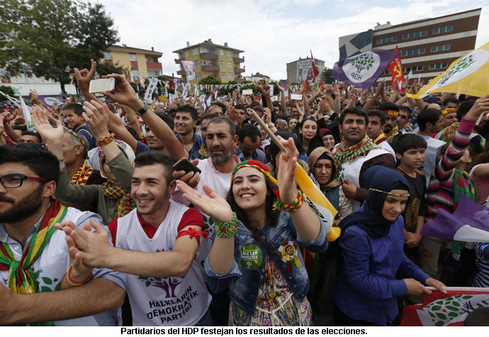 Pero el elemento más interesante de la votación son los resultados obtenidos por el partido de izquierda kurdo HDP (siglas en turco de “Partido Democrático del Pueblo”). Fundado en 2012, realizó una enorme votación, conquistando el 13 por ciento de los votos (más de seis millones de personas), y siendo la cuarta fuerza más votada en estas elecciones. Esto le proporcionará una representación parlamentaria de 80 diputados, 45 más que los que obtuvieron en las elecciones de 2011 sus antecesores políticos.