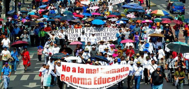 En varios puntos de México hubo movilizaciones para frenar la reforma educativa que está queriendo poner en marcha el Gobierno nacional. En San Cristóbal de las Casas, Chiapas fue una gran movilización de más de 3.000 personas, la mayoría de la comunidad educativa (docentes, padres y estudiantes), la que terminó en una fuerte represión por parte de la Policía Federal, dejando varios docentes heridos.